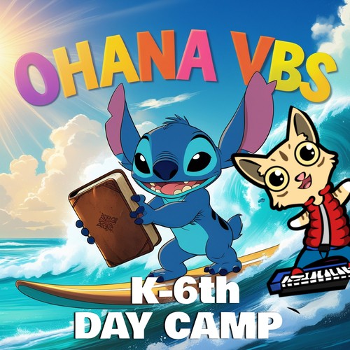 This year VC Kids are headed on a one-way ticket to Hawaii and Beyond via their imagination at the Ohana VBS. This fun Stitch themed VBS will bring the movie to life as the kids embark on a journey to discover what Jesus has to say about God's love, and plan for their lives! Available for rising K-6th Graders.